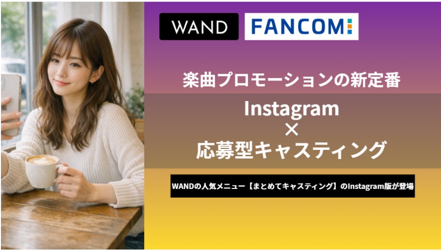 SNSを通じた楽曲のヒット創出を支援する株式会社WAND(本社:東京都渋谷区、代表取締役社長:黒﨑悠一、以下「WAND」)は、TikTokで好評を博していたオリジナルマーケティングパッケージ「まとめてキャスティング」のInstagram版を新たにリリースいたしました。