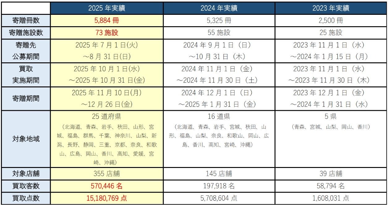 ■お客様の読み終えた本が5,000冊以上分の金額に。本を必要とする児童施設73施設へ中古本を寄贈