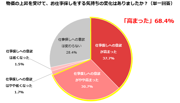 - 物価の上昇を受けて、仕事探しへの意欲が「高まった」68.4%