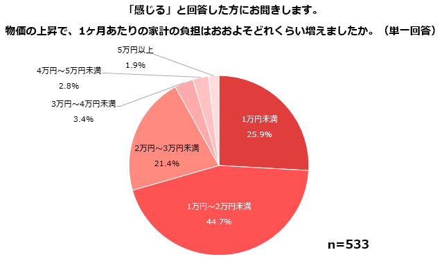 - 1ヶ月あたりの家計への影響 1位「1万円~2万円未満」44.7%