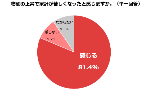 - 物価の上昇で家計が苦しくなったと「感じる」81.4%
