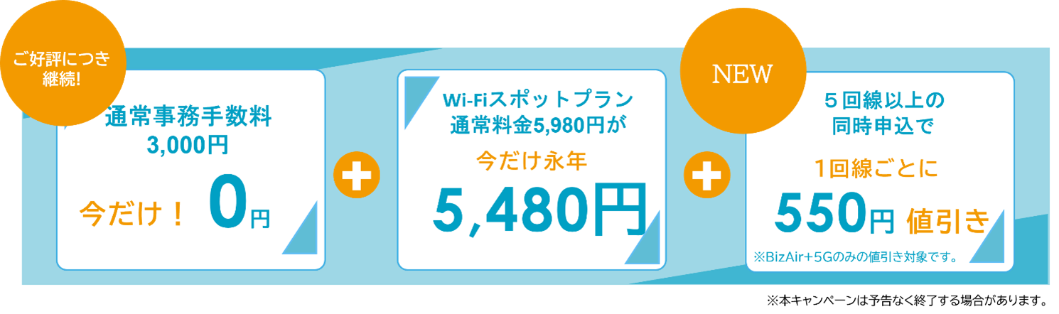WEBからのお申込みでの特別割引キャンペーンの継続実施に加え、5回線以上の同時お申込みで1回線ごとに550円の値引きキャンペーンも開始し、今後も法人企業の様々な課題解決の一助となるよう努めてまいります。