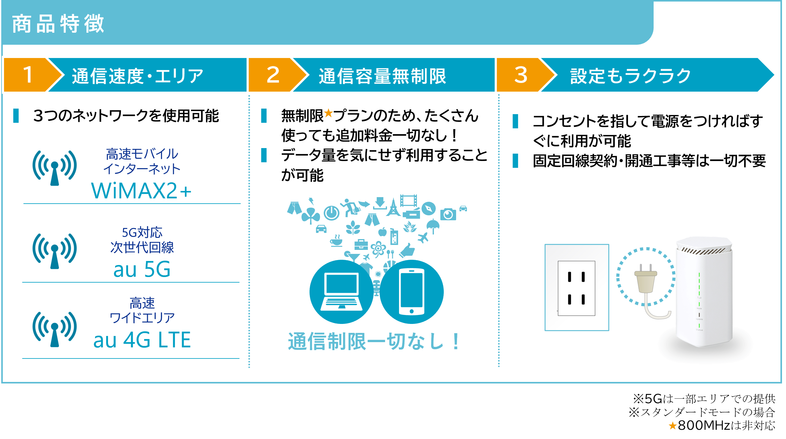 また、大手通信キャリアの最新高速通信の5G対応で※1通信容量も無制限でありながら初月無料、月々4,480円~と導入しやすい価格で提供しております。