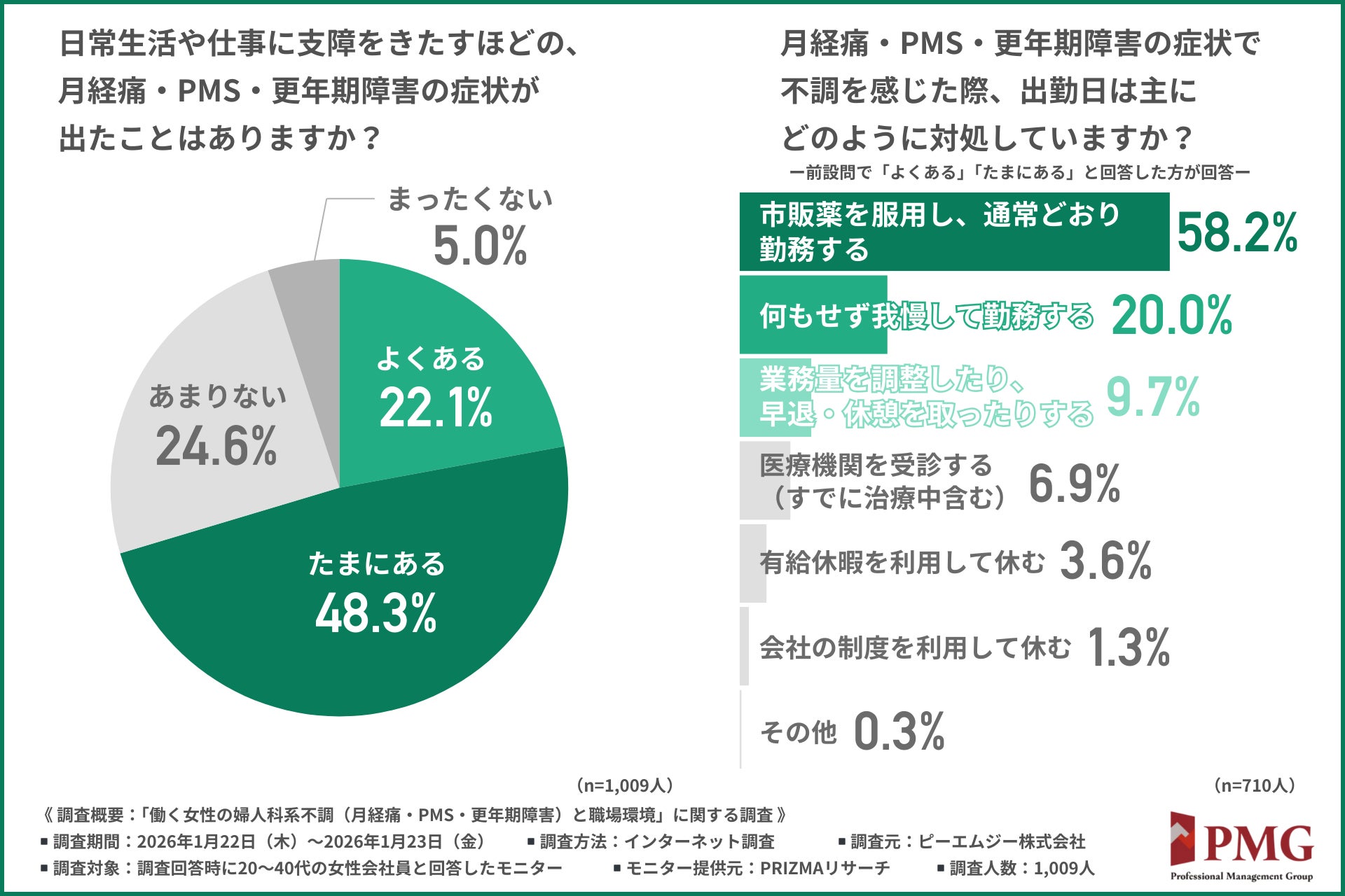 今回の調査では、女性特有の体調不良が仕事に与える影響や、職場の理解度、医療や制度につながりにくい理由を明らかにしました。