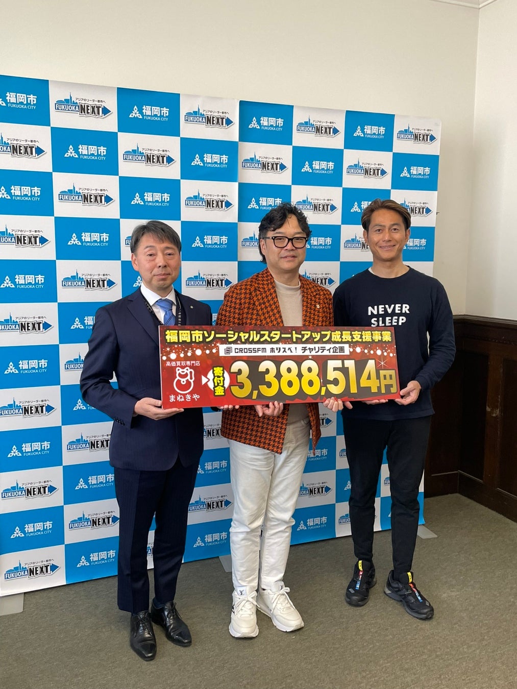 買取専門店「まねきや」を展開する株式会社水野(本社:東京都新宿区、代表取締役:水野 政行、以下「当社」)は、株式会社CROSS FM(代表取締役:堀江 貴文)の特別番組「ホリスペ」内でのチャリティ企画の趣旨に賛同し、福岡市が推進する「ソーシャルスタートアップ成長支援事業」への寄附を決定いたしました。