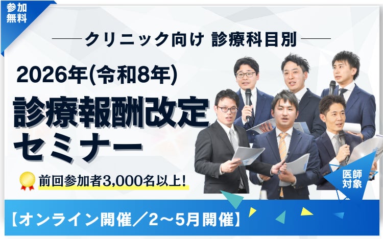株式会社クレドメディカル(本社:大阪市淀川区、代表:志賀 嘉典)は、2026年2月20日(金)より、「2026年度診療報酬改定 改定項目解説セミナー」を開催いたします。診療報酬改定の答申資料をもとに、新設・変更された算定項目等の中から診療科目ごとに必要な情報を厳選し、いち早くお届けします。医師の方限定で参加費無料、オンデマンド配信で3月1日(日)まで繰り返しご視聴いただけます。