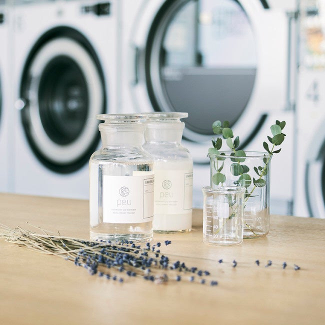 「衣類に、肌に、環境に優しく」をコンセプトとして、ヤシ油由来の原料から開発したバルコオリジナルの洗剤・柔軟剤『peu』で洗い、乾燥します。『peu』は洗剤成分が繊維に残りにくいため、素材の風合いを損ねることなく、洗濯物をすっきりと洗い上げます。