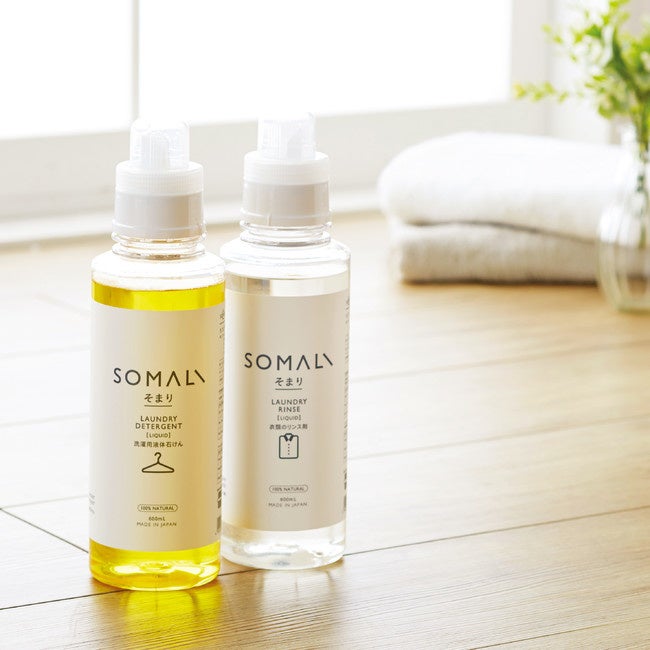 天然由来成分100%でつくられた、液体石けん『SOMALI』で洗い、クエン酸を配合したリンス剤で仕上げます。通常より低い温度で、縮みを防いでゆっくり乾燥。液体石けんは天然のオレンジ精油を配合しています。