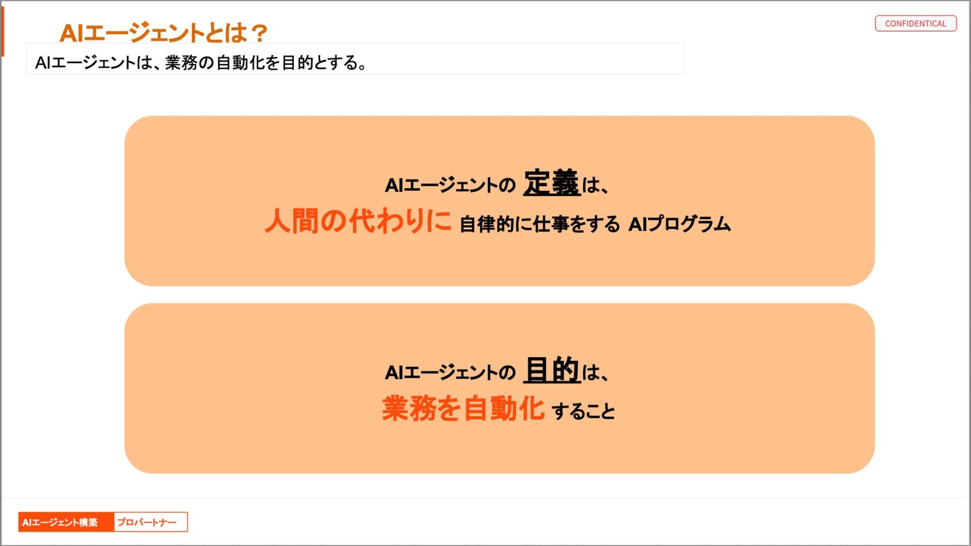 AIエージェント構築プロパートナーと、AI新規事業開発プロパートナーの二つのサービスを展開しています。