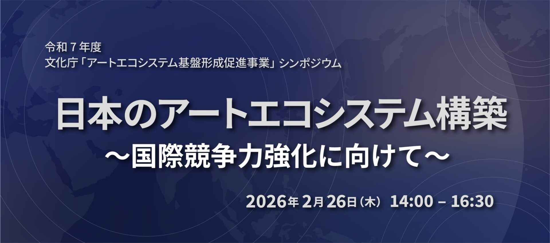 ユニバーサルアドネットワーク株式会社(代表取締役 川上尚志)は、令和7年度文化庁事業「アートエコシステム基盤形成促進事業」の運営事務局として、2026年2月26日(木)に文化庁主催シンポジウム「日本のアートエコシステム構築~国際競争力強化に向けて~」を、日本橋兜町の「QUICK Square」にて開催いたします。本シンポジウムでは、2024年の1年間における日本のアート市場の規模等を把握する国内市場調査「The Japanese Art Market 2025」の結果を初公開するほか、諸外国のアート振興に関する国際動向調査の報告、産官の専門家によるパネルディスカッションを実施します 。