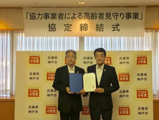 (写真左:神戸市 森下 福祉局長 右:ワタミ 菊本 営業部本部長)