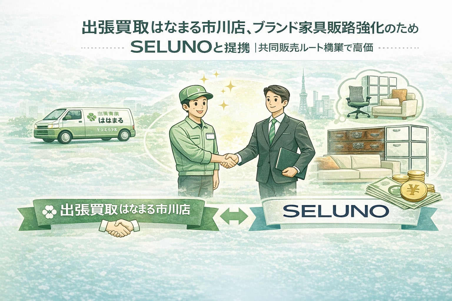 出張買取はなまる市川店、ブランド家具販路強化のためSELUNOと提携|共同販売ルート構築で高価買取体制を拡充