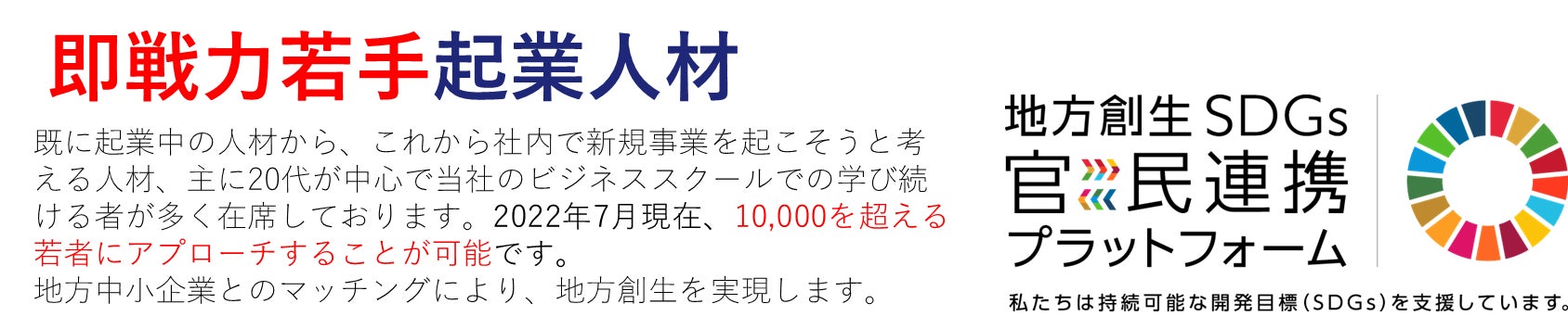 このノウハウ・リソースを活かして、地方中小企業に新規事業を作り出して雇用と取引を生み出し、地方全体のサステイナブルな成長を実現します。そのための活力として新規事業を企画実行するのが「若手起業人材」であると考え、優秀な人材を集め教育しております。