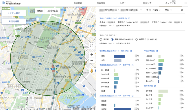 *ドコモGPS統計データとは、ドコモがアプリユーザー同意のもと取得し、個人を特定できない形式に加工、統計化したデータを指し、属性毎(性別・年齢層等)の統計データを用いた分析が可能となります。NTTドコモグループに属する株式会社オークローンマーケティングから提供を受け使用しています。