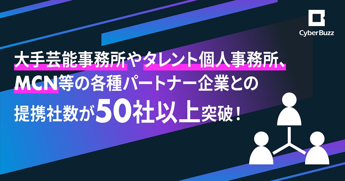 サイバー・バズ、大手芸能事務所やタレント個人事務所、MCN等の各種パートナー企業との提携社数が50社以上突破!