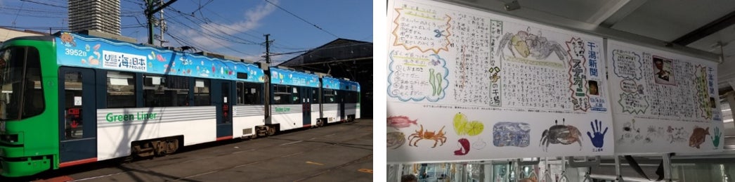 彼ら一人一人のオリジナルの「里海新聞」は10月中旬から約1か月間、広島電鉄の路面電車に掲出予定、この車両は、子どもたちが描いた「里海」の絵やイラストがラッピングされた「世界唯一の里海特別電車」として、広島市内をはじめ、世界遺産厳島神社のある宮島へ向かう路線も走る予定です。