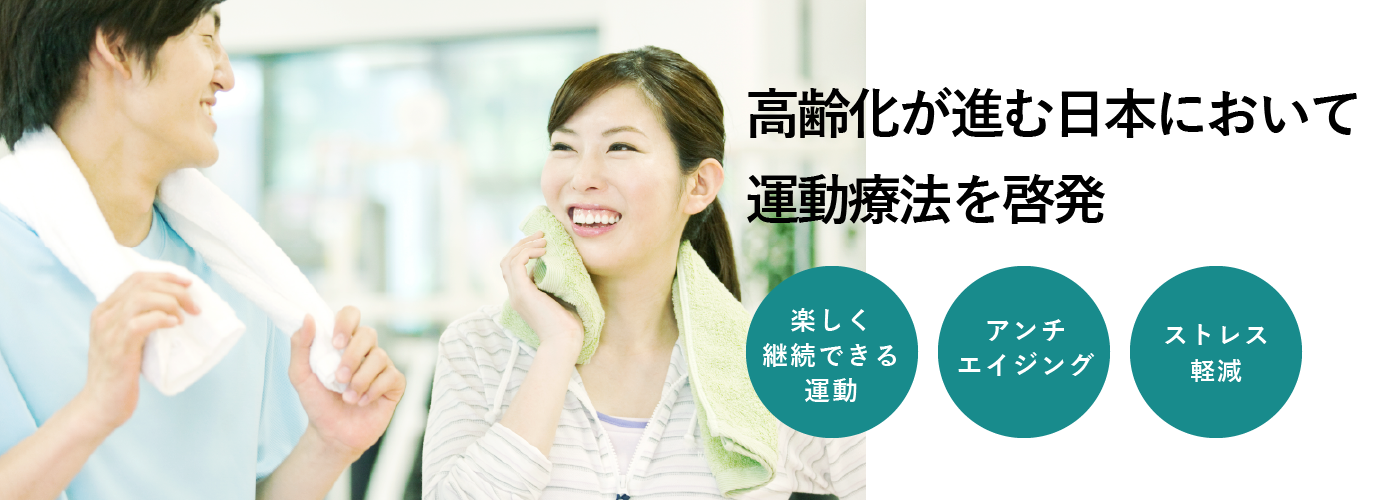 障害や疾患の治療や予防のために運動を活用することです。運動不足は生活習慣病の重要な要因であることが明らかになって来ており、従来の薬物療法に加え食事療法とともに運動療法の重要性が高まりつつあります。具体的なアプローチは、歩行などの有酸素性運動による中性脂肪や体脂肪の減少(肥満症・高脂血症)・血圧の降下(高血圧)・血糖の低下・糖質代謝の改善(糖尿病)などが基本で運動する刺激による筋萎縮や骨粗鬆症などの予防やストレス解消によるストレス性疾患の改善にも効果が期待されています。当協会が理念に掲げている3つの美容「外面の美容」「内面の美容」「精神面の美容」を整え、真の美と健康を体現していくにあたっても大変有用な療法です。