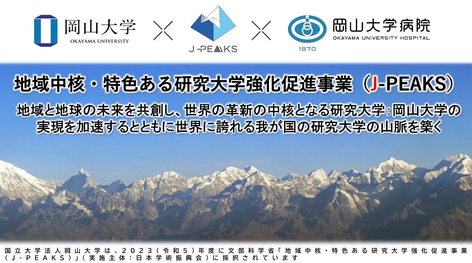 岡山大学 文部科学省「地域中核・特色ある研究大学強化促進事業(J-PEAKS)」に採択~地域と地球の未来を共創し、世界の革新の中核となる研究大学:岡山大学の実現を加速とともに世界に誇れる我が国の研究大学の山脈を築く~
