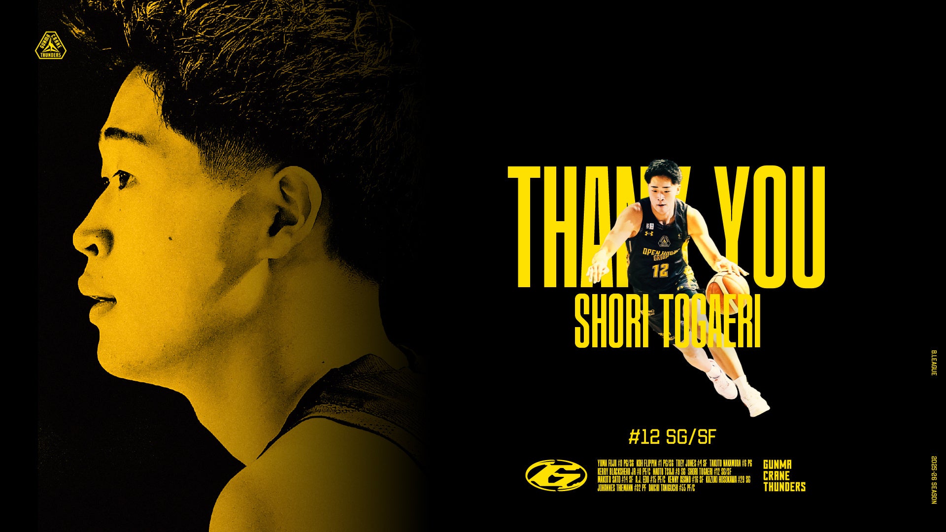 この度、群馬クレインサンダーズでは、特別指定選手として登録されました 十返翔里 選手の活動期間が、2026年3月8日(日)をもって終了となりましたのでお知らせいたします。