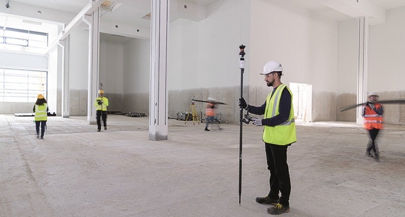 - 傾き補正: 測量ポールの傾きを読み取る傾き補正機能で生産性と効率を向上します。ポールを垂直に安定させ気泡管を合わせる必要がなく、さらに頭上にある点等、アクセスの難しい点を容易に測定できるため作業効率が格段に向上します。