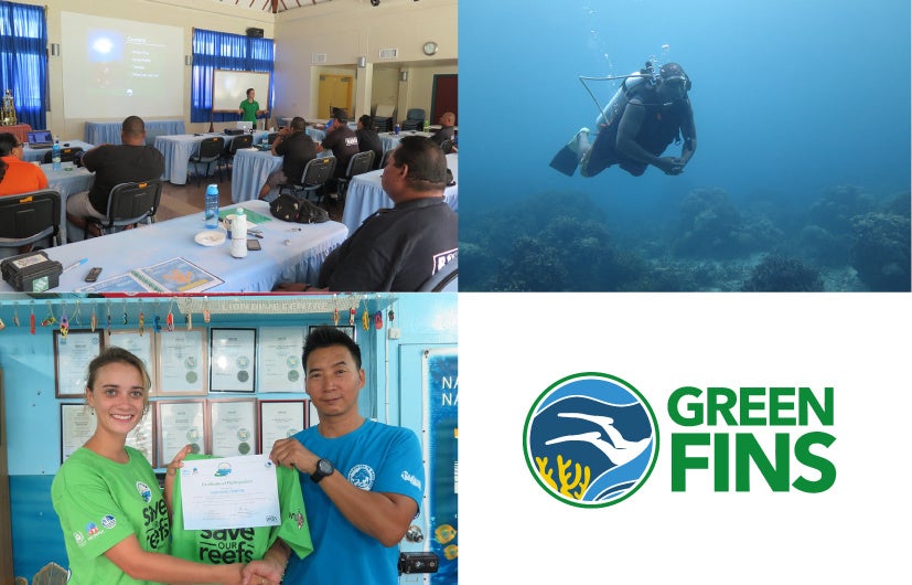 2004年、国連環境計画が開始した取組み。ダイビングやシュノーケリング事業に対し、環境に優しいガイドラインを普及させていくことを通して、サンゴ礁を保全することを目的としている。現在はリーフワールド財団が主導する。ダイビング・シュノーケリング業界にとって、唯一の国際的な環境基準であり、厳しい評価制度を設けおり、導入後の効果測定なども行っている。設立以来、世界14カ国、約600のダイビングショップがGreen Finsの考え方を導入している。