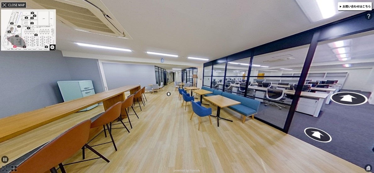 (写真=VRの画像。オフィスの状況を360度3Dで見ることができるほか、オフィス家具などのシミュレーションも可能。https://spacely.co.jp/office-navi/tokyo-newoffice )
