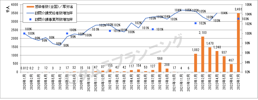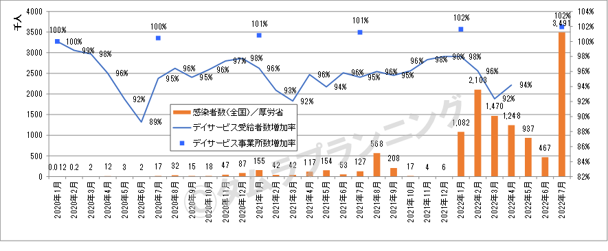 感染者数の増減に影響を受けやすいデイサービス、回復の兆しが見られないショートステイ