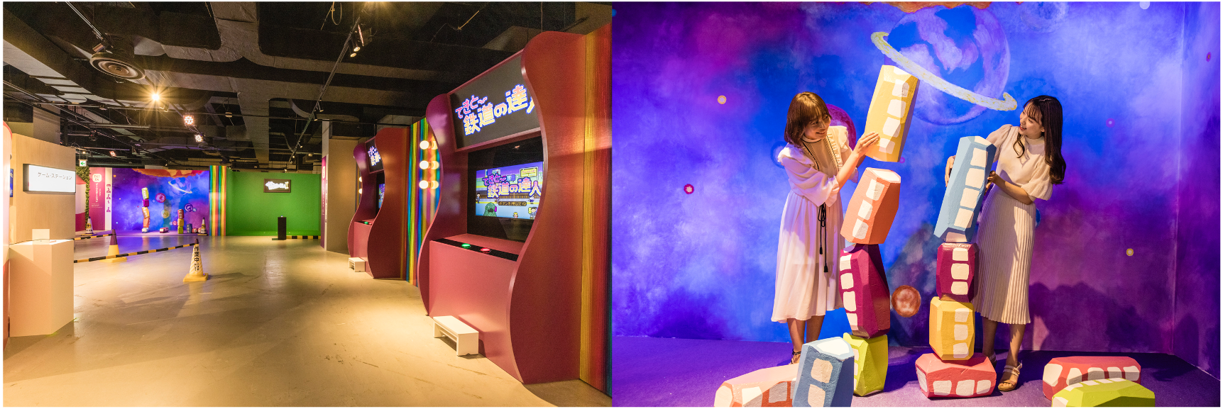 鉄道をモチーフにした多種多様なゲームでで遊ぶことができるエリアです。吊り革を輪投げのように遊ぶ「つりか輪投げ」に、変な人が電車に入ってくるのを防ぐ「てきと〜鉄道の達人1」、他にも、電車を積み上げていく「ぐらぐら銀河鉄道」と、誰でもできる簡単なアナログゲームからデジタルゲームまで楽しむことが可能です。