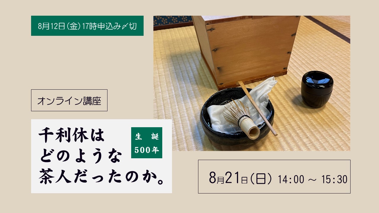 今年は千利休の生誕500年にあたります。茶の湯のなかで神格化している印象をお持ちの方もいらっしゃると思います。その実像を信憑性の高い史料からお話をしていきます。(Zoomを使用したオンライン講座です)