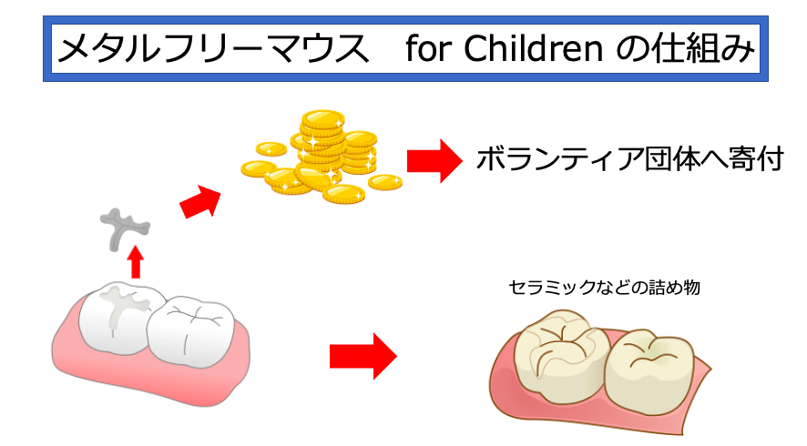 口腔内のメタル由来の補綴物を0にすることと、日本の子供たちを支えるボランティア活動の為に「メタルフリーマウスfor Children」を2022年09月01日(木)より実施いたします。