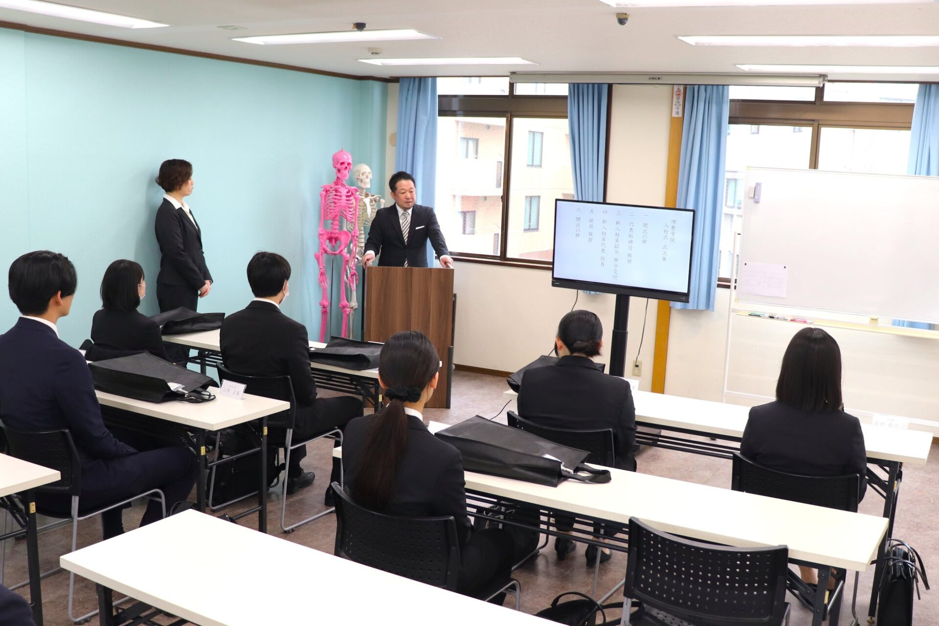 新入社員代表者による挨拶では、堺整骨院グループの一員として地域医療に貢献したいという熱い決意と、未来に向けた力強い抱負を述べました。