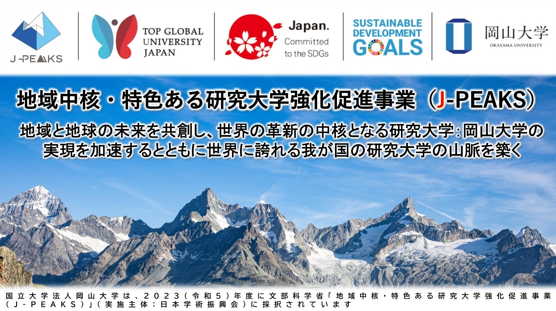 岡山大学 文部科学省「地域中核・特色ある研究大学強化促進事業(J-PEAKS)」に採択~地域と地球の未来を共創し、世界の革新の中核となる研究大学:岡山大学の実現を加速とともに世界に誇れる我が国の研究大学の山脈を築く~