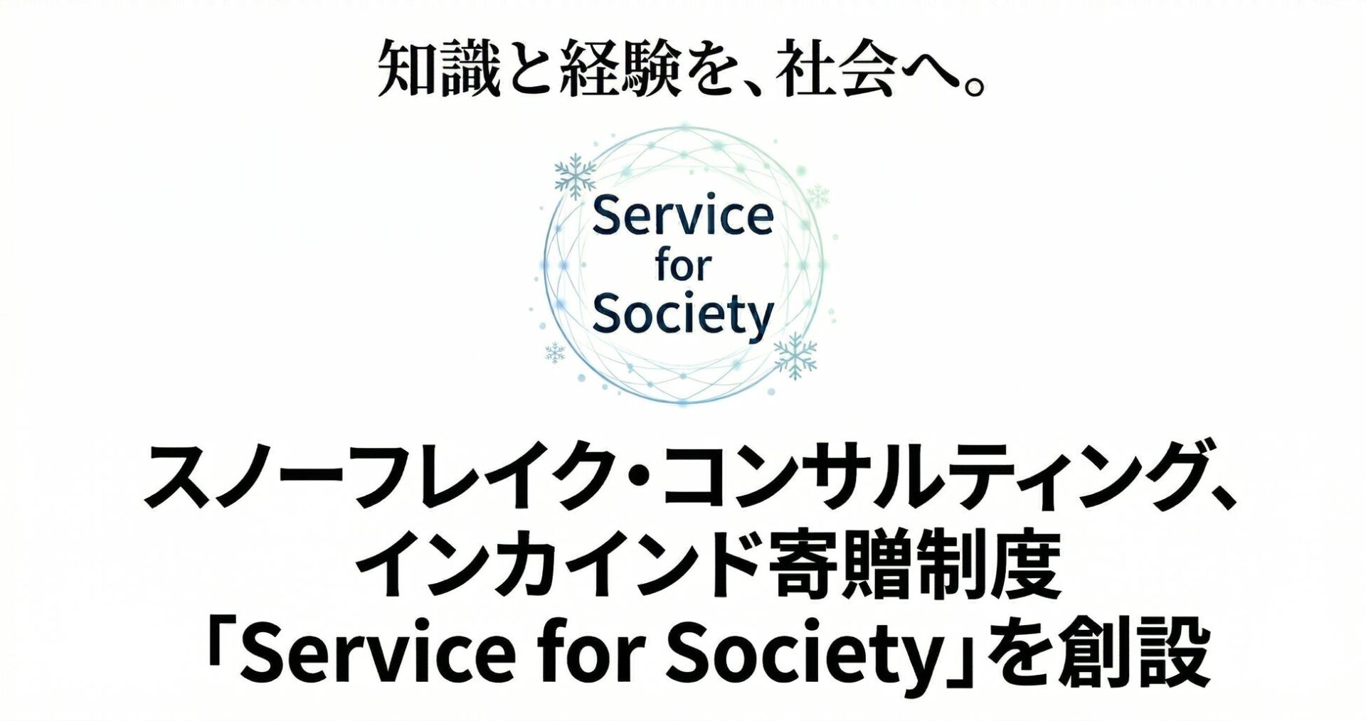 スノーフレイク・コンサルティング合同会社(愛知県名古屋市/代表:中島正博)は、生成AI活用支援やエフェクチュエーション理論に基づく経営支援など、自社の商品・サービス・教材を非営利団体へ無償で提供するインカインド寄贈制度「Service for Society」を創設したことをお知らせいたします。