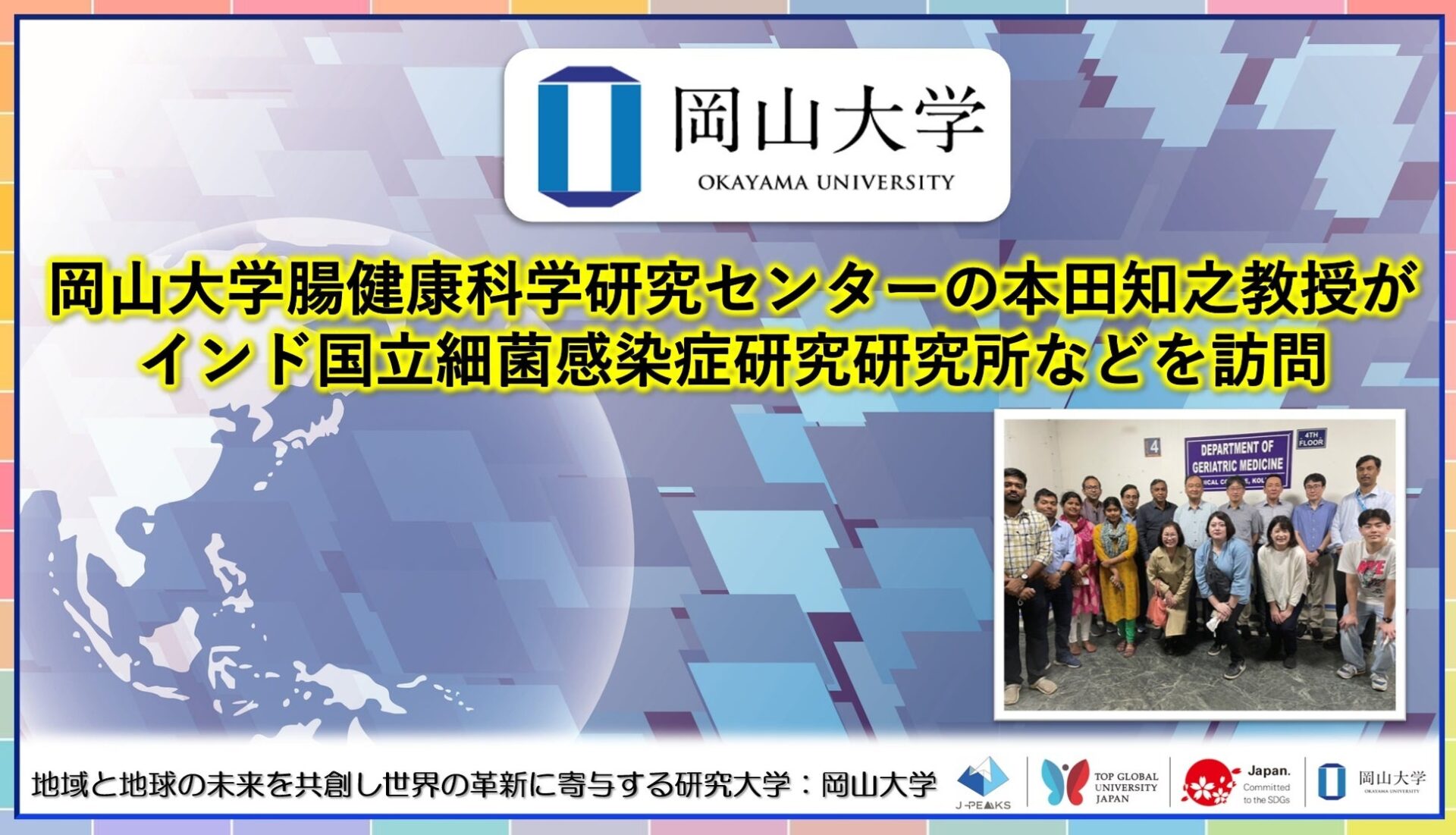 国立大学法人岡山大学(本部:岡山市北区、学長:那須保友)の異分野融合教育研究機構を構成する腸健康科学研究センターの本田知之教授(学術研究院医歯薬学域・病原ウイルス学)は2026年3月9、10日にインド・西ベンガル州・コルカタ市の国立細菌感染症研究研究所、州立感染症病院、コルカタ医科大学、本学インド感染症共同研究センターを訪問しました。