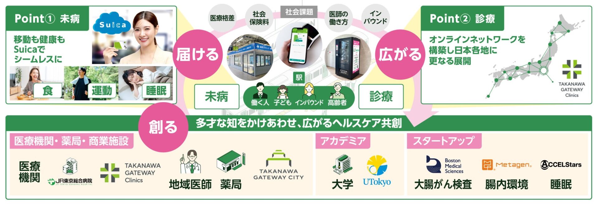 この取組みは、TAKANAWA GATEWAY CITYを起点としたヘルスケアサービスの拡大とともに、お客さまの生活に徹底的に根差したSuicaを創り上げていく「Suica Renaissance」の一環として推進します。