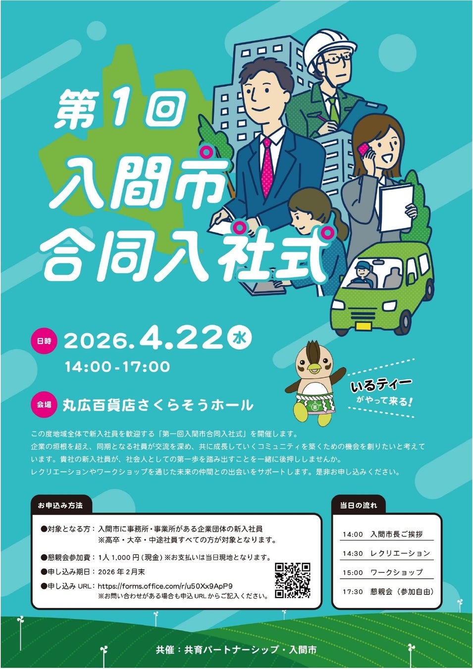入間市は、企業の垣根を越えて新入社員同士が交流し、社外同期としてつながるコミュニティを築くことを目的とした「第1回 入間市合同入社式」を開催します。