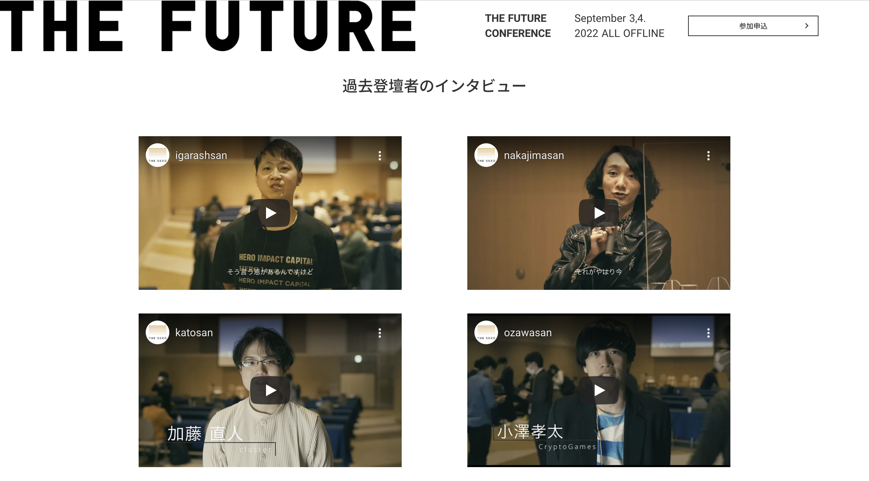 webサイトでは、前回ご登壇いただいた方々からコメント動画などをご紹介しております。