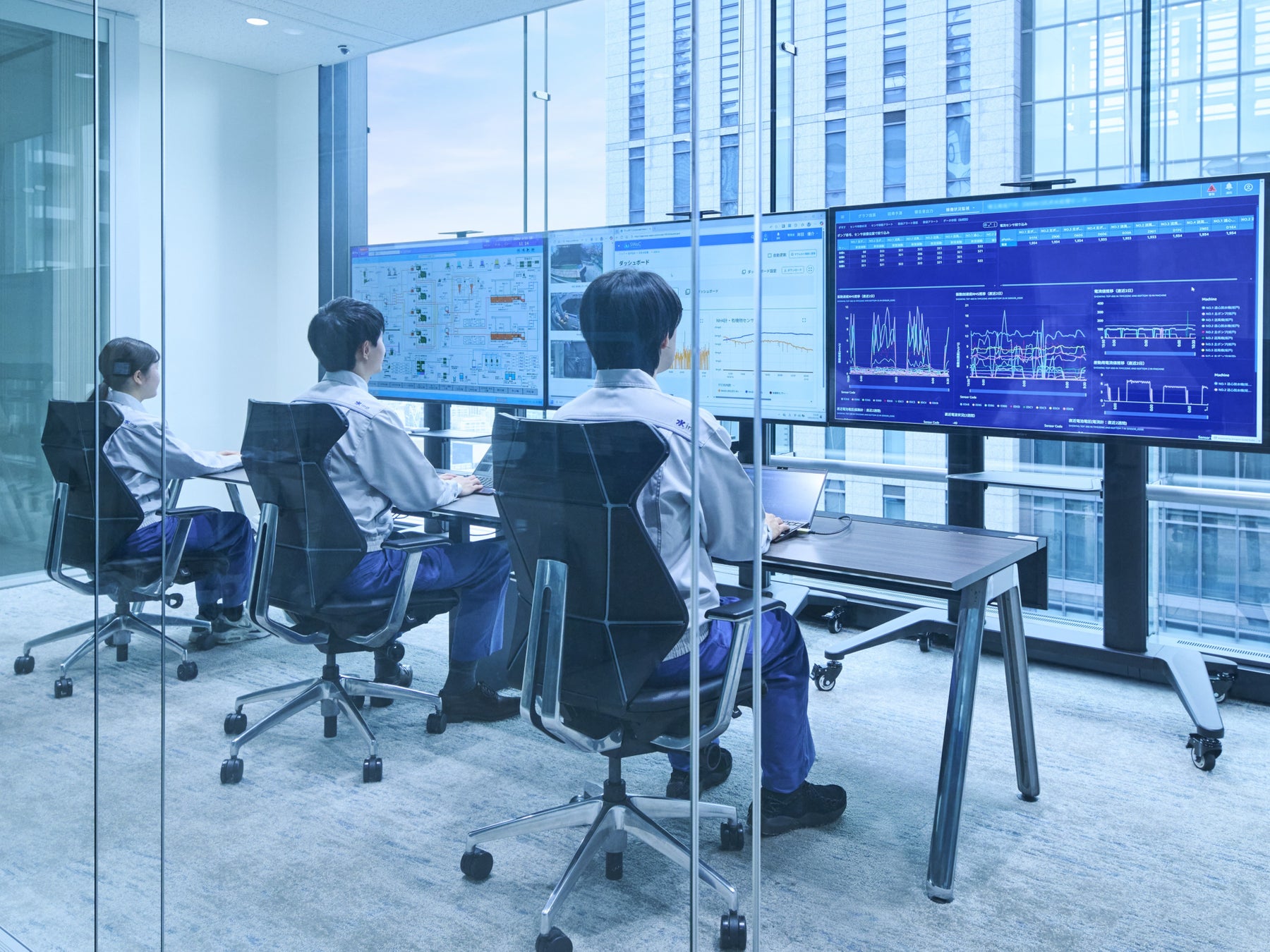 写真︓「Sustainable Water Cloud®(SWaC®)」を用いて、遠隔監視する様子