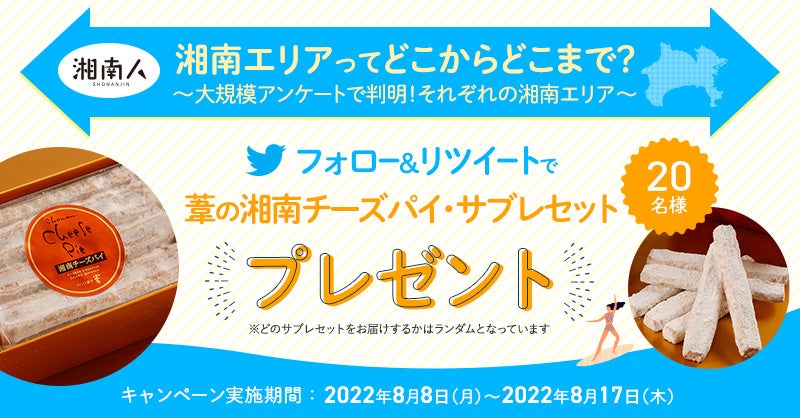 湘南エリアに11店舗を持つ洋菓子店の老舗「湘南ガトーアベニュー 葦」を代表する人気商品「湘南チーズパイ」を、抽選で20名様にプレゼントいたします。