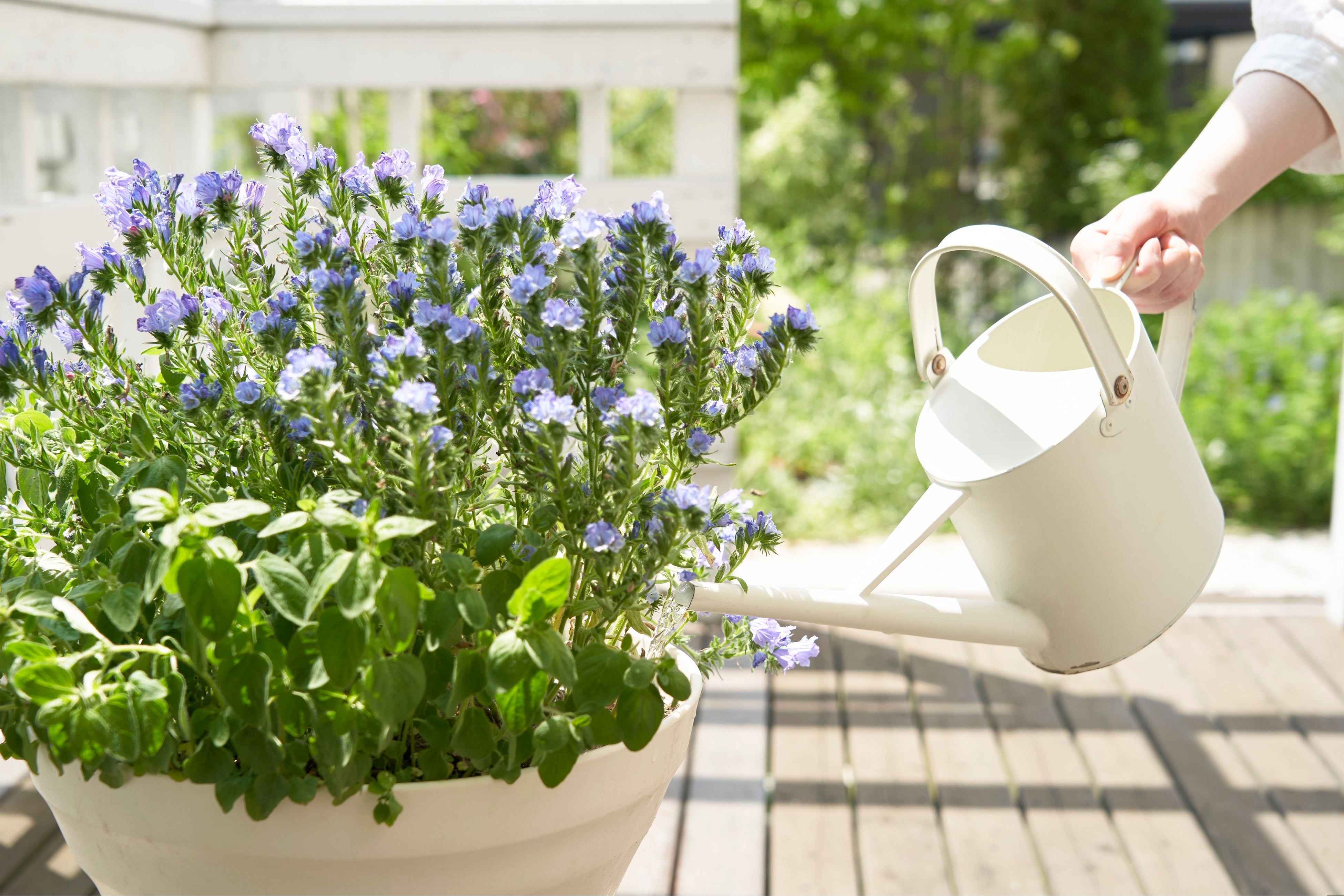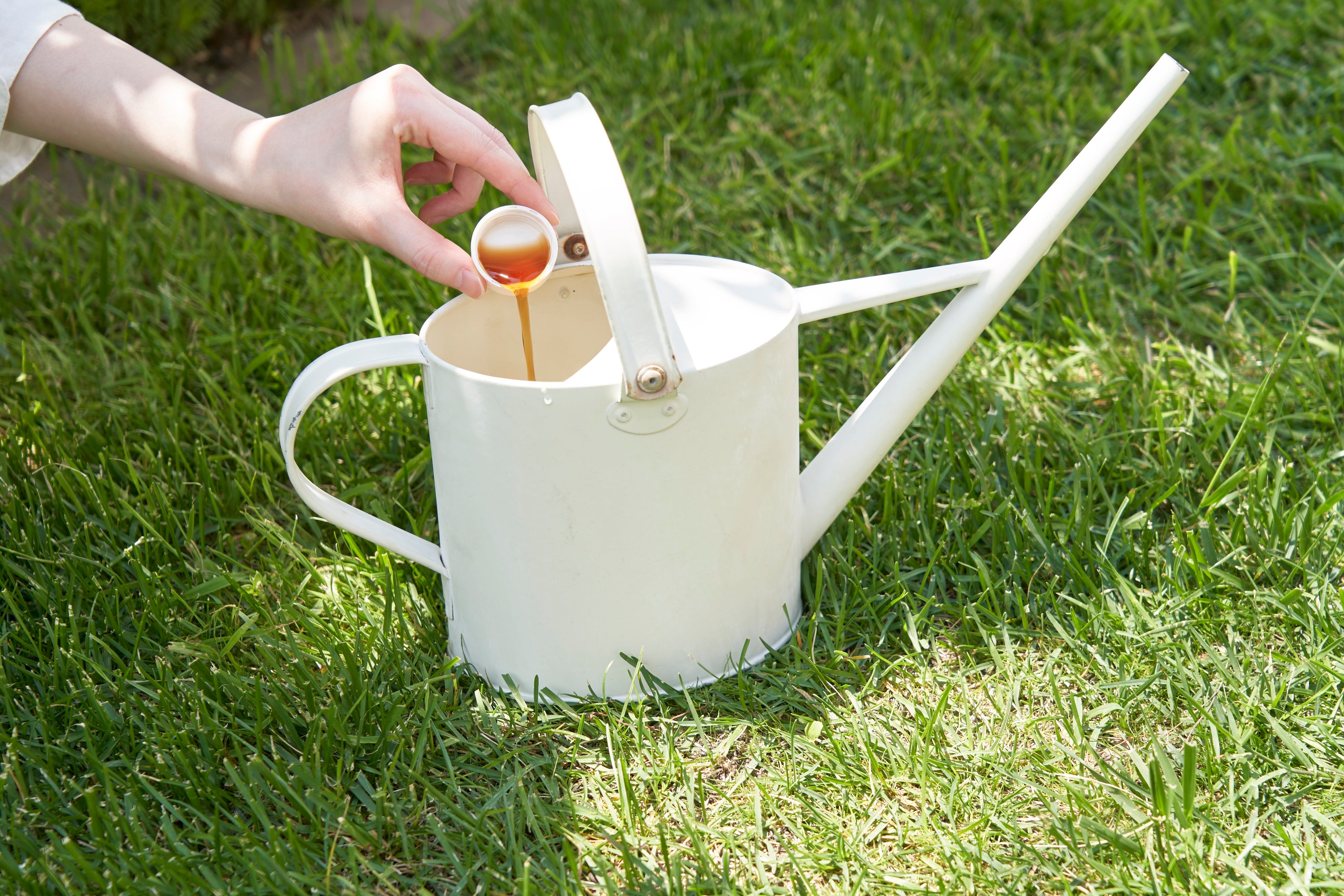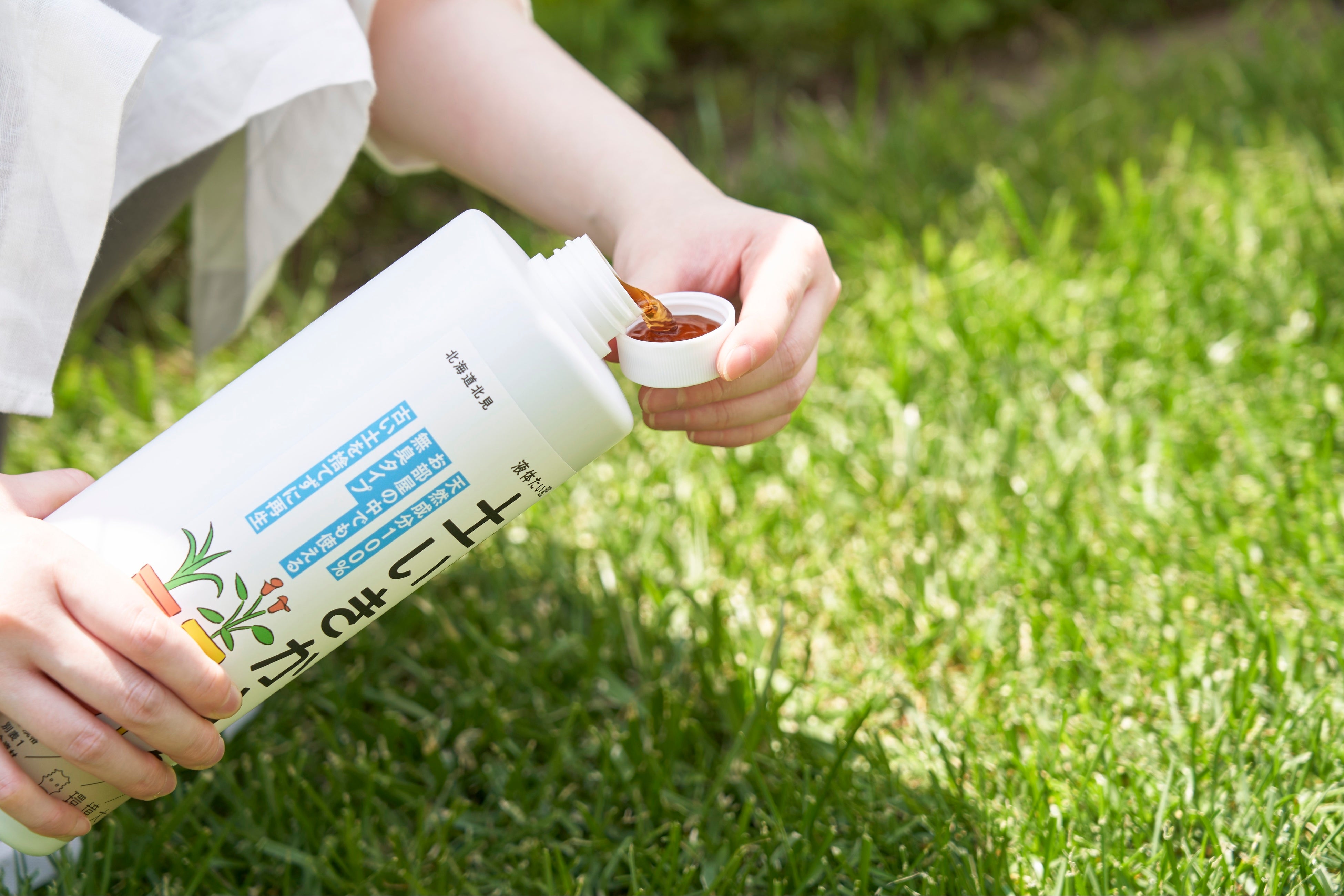 プランターの花や野菜に水をあげるタイミングで、10倍〜50倍の希釈液を、土の表面がしっとり湿るように散布してください。コップ1杯に対して、本商品のキャップ2〜3杯が目安です。