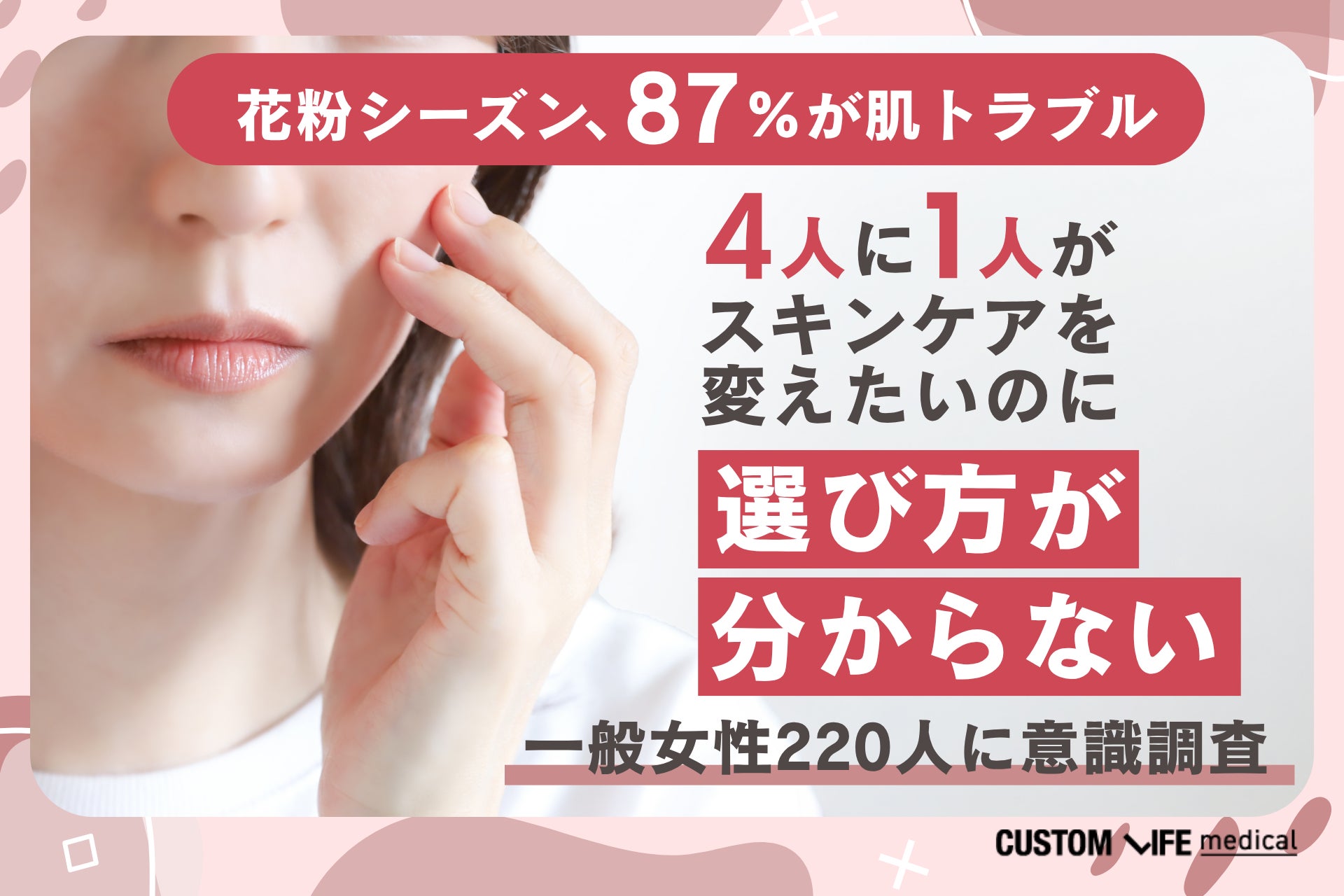 カスタムライフmedicalでは、運営会社である株式会社カスタムライフの公式アカウント「homenote(フォロワー約18万人)」にて、フォロワーを対象としたアンケートに加えインターネット調査を実施し「花粉シーズンの肌トラブル実態調査」を行いました。