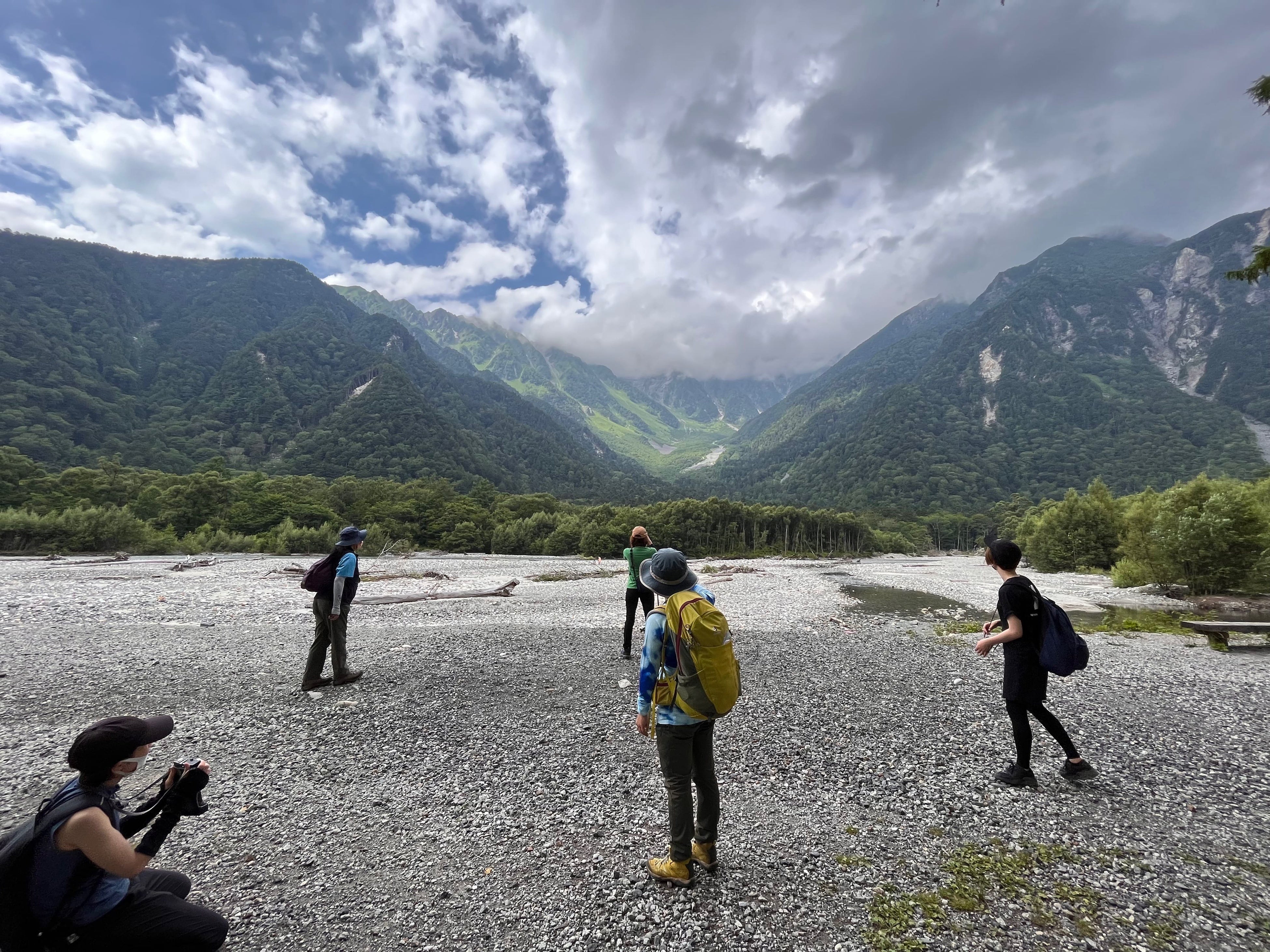 松本高山Big Bridge構想実現プロジェクトは、中部山岳国立公園南部地域を間に挟み、松本市街地と高山市街地を繋ぐ横断ルートを”Big Bridge(ビッグブリッジ)”と位置付け、多彩で上質な体験と滞在ができる魅力的な観光ルートに磨き上げていくプロジェクト。令和4年度は、地域DMOである一般社団法人松本市アルプス山岳郷が、松本~高山間の観光団体、松本市、高山市、環境省などと連携し、「1週間の滞在」「松本~高山の横断」「山岳・高原・街を満遍なく巡る」「環境配慮が感じられる」というBig Bridgeを象徴する4つの要素を具現化するために、具体的なルート開発に取り組んでいます。7月26日~27日の1泊2日で実施したモニターツアーでは、ルートの検証および相互交流を目的に本プロジェクトに関係する地域・団体の有志の方々に参加してもらいました。相互交流として、松本側からの参加者は高山奥飛騨コースの一部を、高山側の参加者は上高地乗鞍コースの一部をそれぞれ体験していただき、参加後のワークショップにてルートのブラッシュアップとフィードバックを行いました。