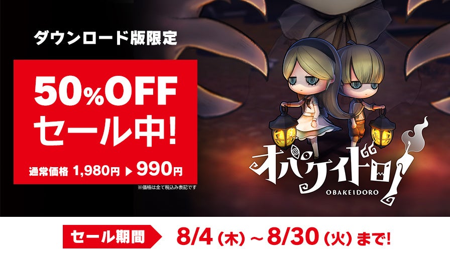 2022年8月4日(木) 0:00 ~8月30日(火) 23:59までの期間、ダウンロード版『オバケイドロ!』が初の50%OFFとなる期間限定セールを実施します。