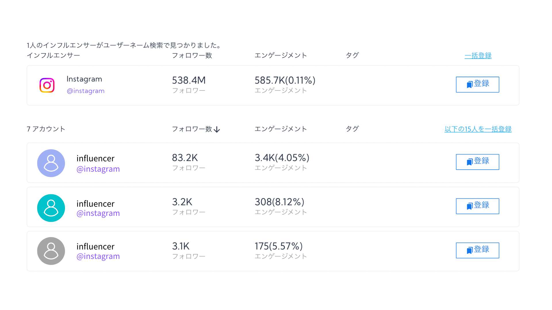 - インフルエンサーの類似アカウント発見機能がアップデート