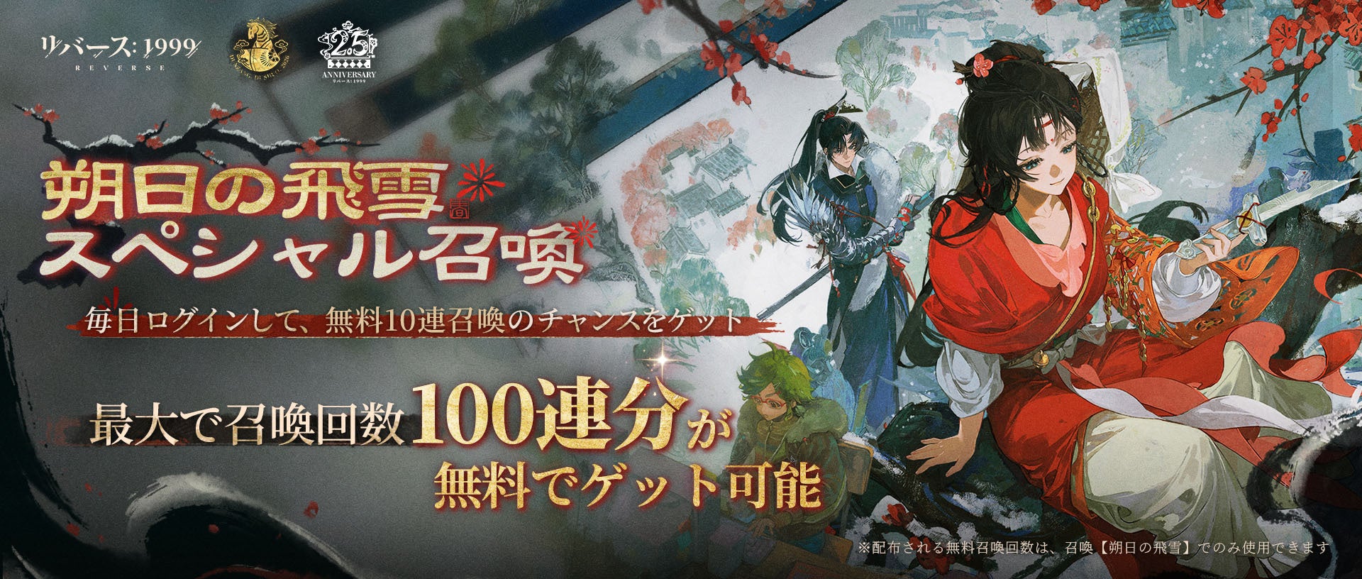 ■2.5周年記念!最大100連無料召喚「朔日の飛雪」開催