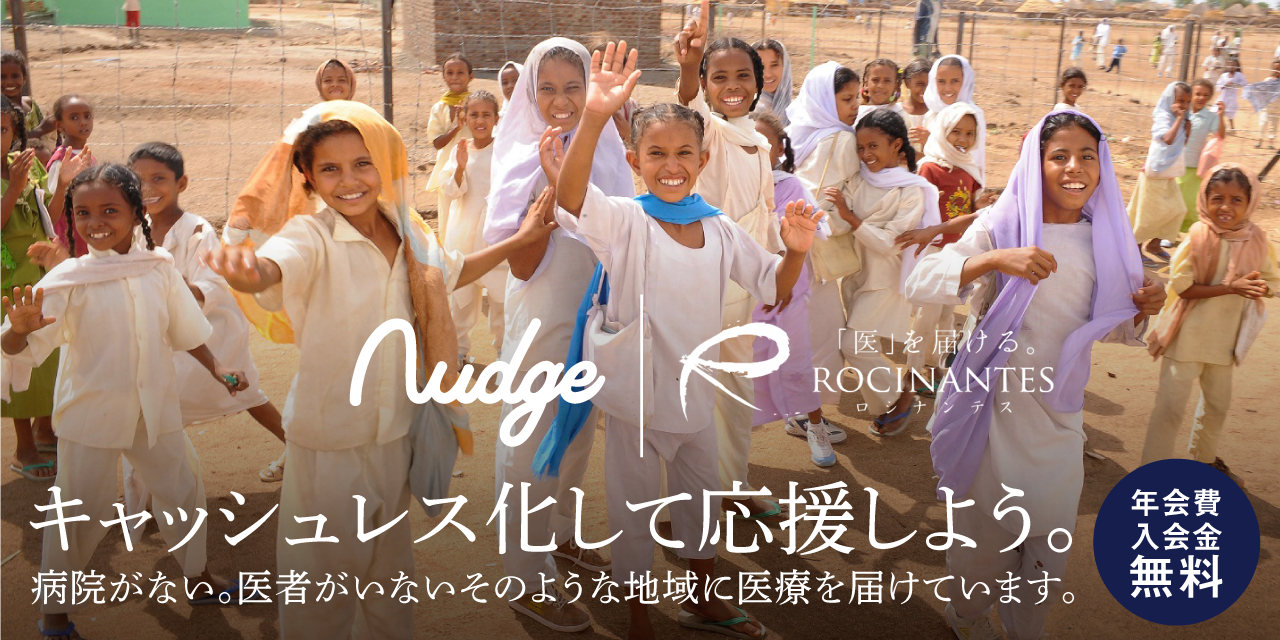 「認定NPO法人ロシナンテス」は、Nudgeカードの仕組みを使って、日常のお買い物を通じて、ロシナンテスの活動を支援することができるクラブです。