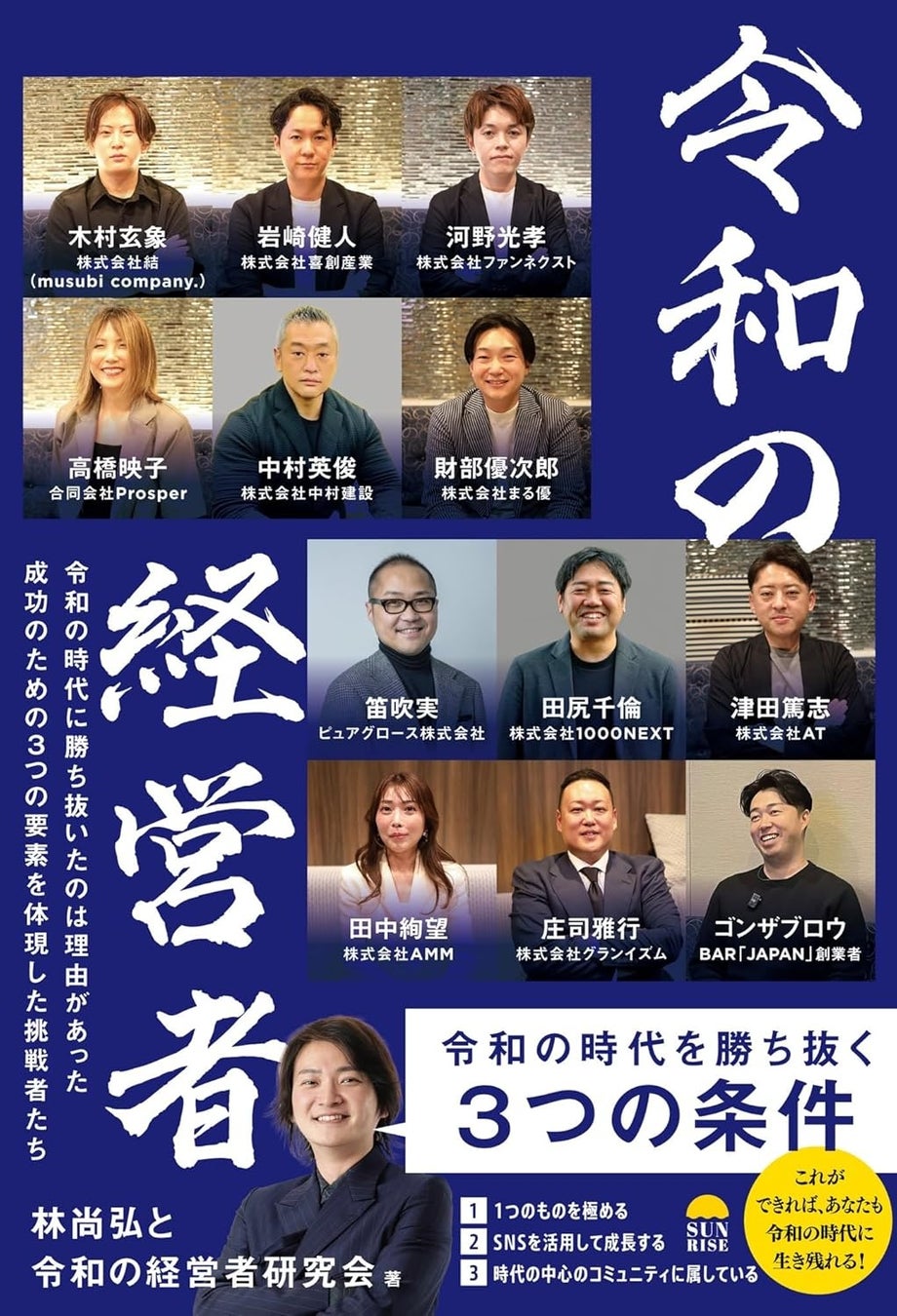 この度、林尚弘さんが注目する起業家の一人として取材・収録していただき、本日無事に出版の日を迎えることができました。 本書で描かれているのは、机上の理論ではなく、「現場で起きたリアル」です。私自身、共にご一緒させていただいた木村玄象さん(ゴーストレストランFC)、中村英俊さん(中村建設)、田中絢望さん(美容サロンコンサルティング)といった各業界の最前線を走る11名の方々のストーリーを読み、大変多くの学びがありました。