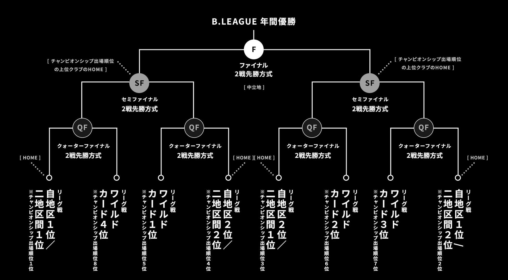※セミファイナルは、クォーターファイナルを勝ち上がった2チームのうち、キングスがチャンピオンシップ出場順位の上位である場合にのみホーム開催となります。