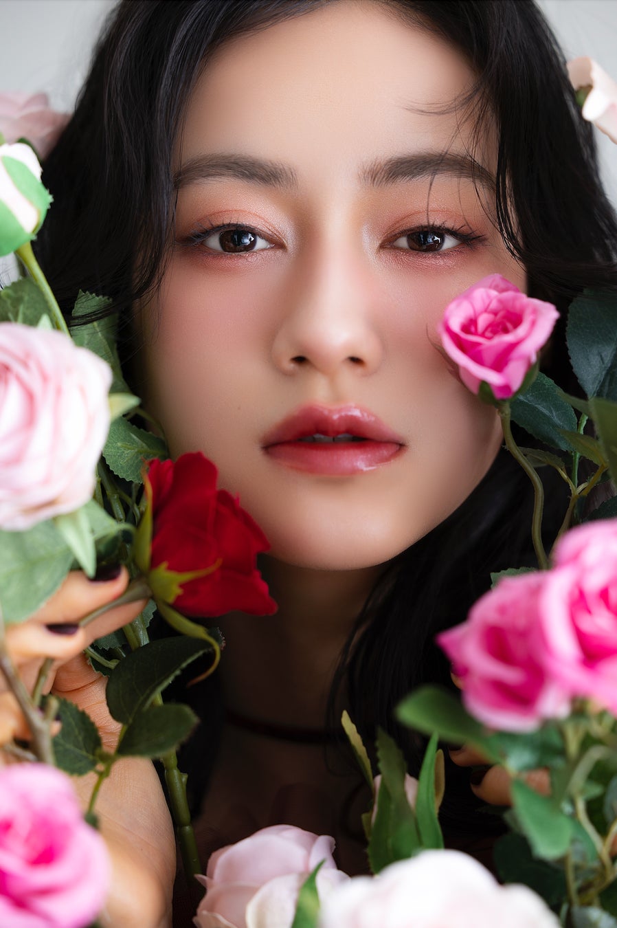 メイクはチークとリップをポイントにうさぎのような儚さを表現。