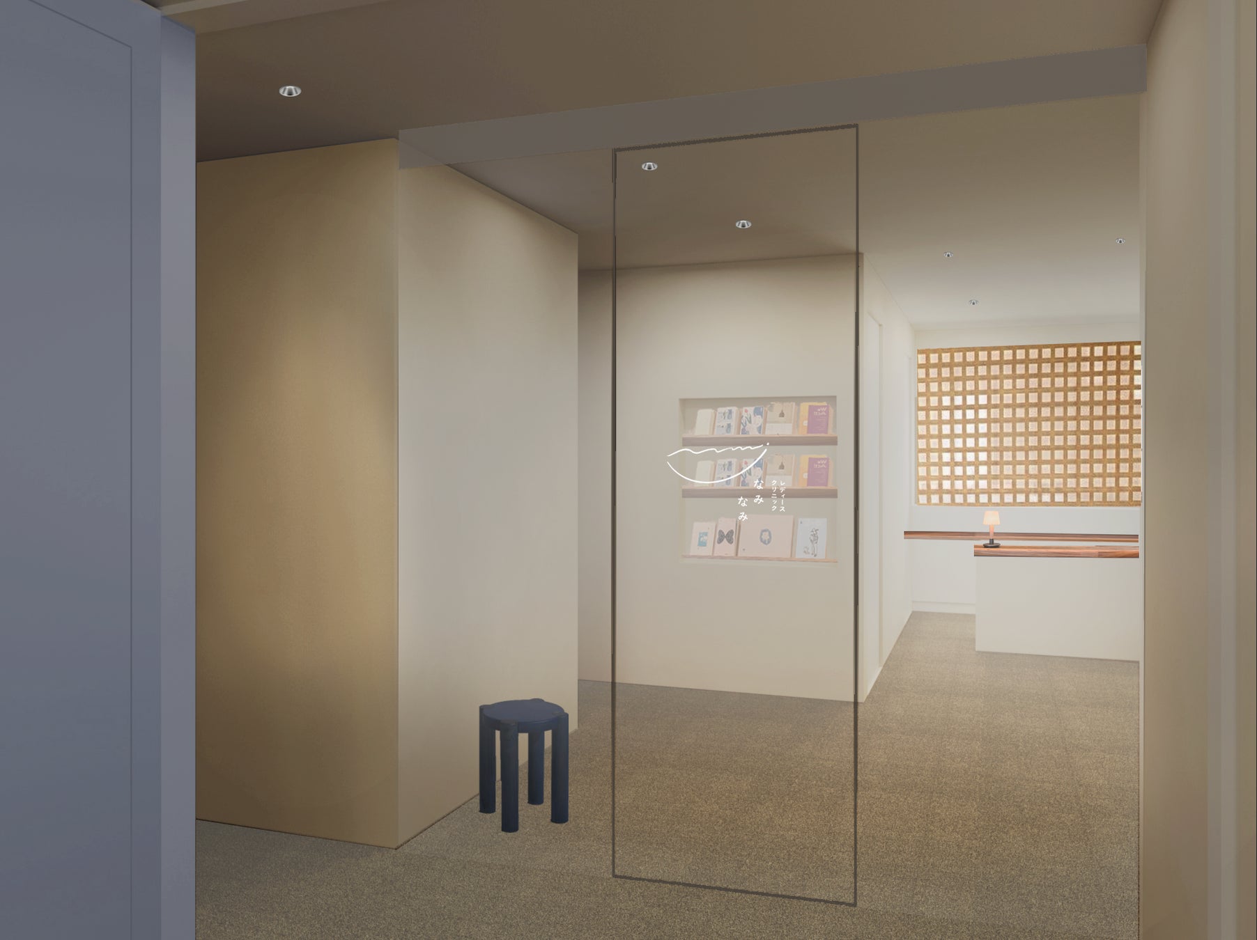 「女性の胎内」をイメージした温かい色味の1階に対し、12階の内装は、「産道を抜けた先の柔らかく明るい光」をイメージした「薄明」をコンセプトに設計しました。淡いグラデーションと自然素材を取り入れた空間が、来院される方の心身の緊張をほぐし、自分自身と向き合う静かな時間を提供します。